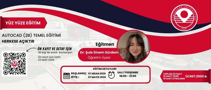 AutoCAD, Autodesk tarafından geliştirilen, teknik çizim ve tasarım alanlarında kullanılan profesyonel bir bilgisayar destekli çizim (CAD) yazılımıdır. Bu eğitimin amacı; katılımcılara AutoCAD yazılımının iki boyutlu (2B) çizim ortamını öğretmek, teknik çizim mantığını kavratmak ve mimarlık, inşaat, teknik çizim alanlarında temel 2B çizimleri hazırlayabilecek yeterliliği kazandırmaktır. Eğitim programı, AutoCAD’in 2B arayüzü, temel çizim ve düzenleme komutları, katman mantığı, ölçülendirme ve çıktı alma konularını kapsar. Eğitim programı uygulama ağırlıklıdır ve her katılımcı bilgisayar başında birebir çizim çalışmaları gerçekleştirir.
