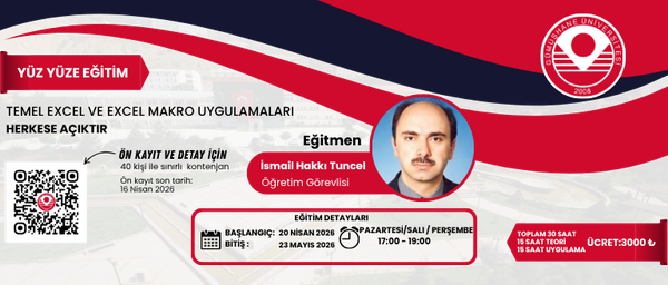 Yer: Eğitimin gerçekleştirileceği laboratuvar bilgileri Sürekli Eğitim Merkezi tarafındanbelirlenecek ve ilan edilecektir
